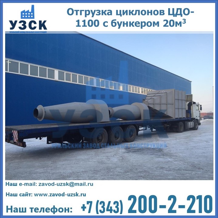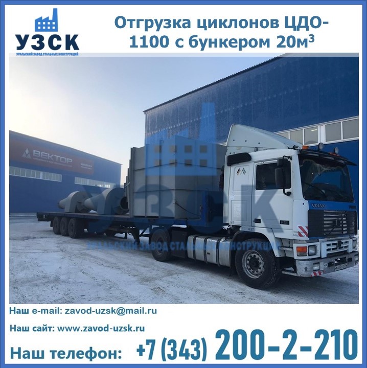 Циклоны ЦДО-1100 с бункером на 20 кубов были отгружены в декабре 2018 года в г. Новосибирск Магнитогорск.