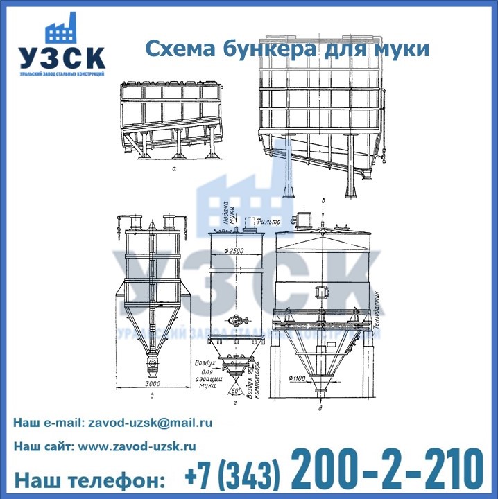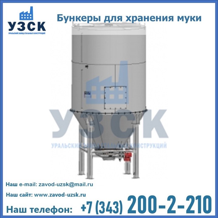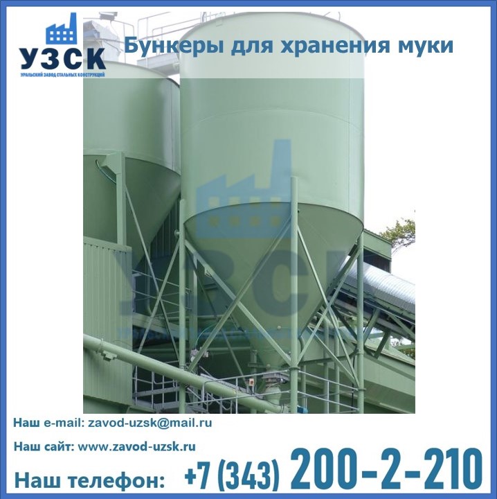 Завод «УЗСК» в Магнитогорске проектирует, производит и поставляет целевое оборудование, в том числе, бункеры для хранения муки и прочих сыпучих материалов.