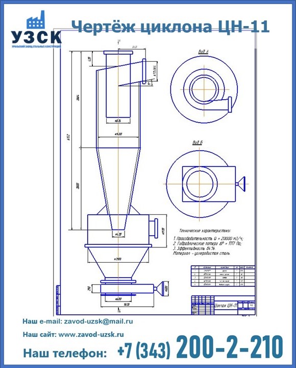 Циклоны ЦН 11 можно купить в УЗСК в Магнитогорске. Мы предлагаем самые выгодные условия и оптимальную стоимость для приобретения данного оборудования. Сделать заказ очень просто, требуется только оформить заявку на нашем сайте или позвонить по указанному телефону. УЗСК также занимается реализацией и производственным выпуском циклонов и прочих изделий под заказ, цена на нашу продукцию формируется исходя из индивидуальных требований заказчика и специфики производства. Мы производим циклоны из высококачественной нержавеющей стали (толщина 3-4 мм), при необходимости, толщина конечного изделия может быть увеличена.