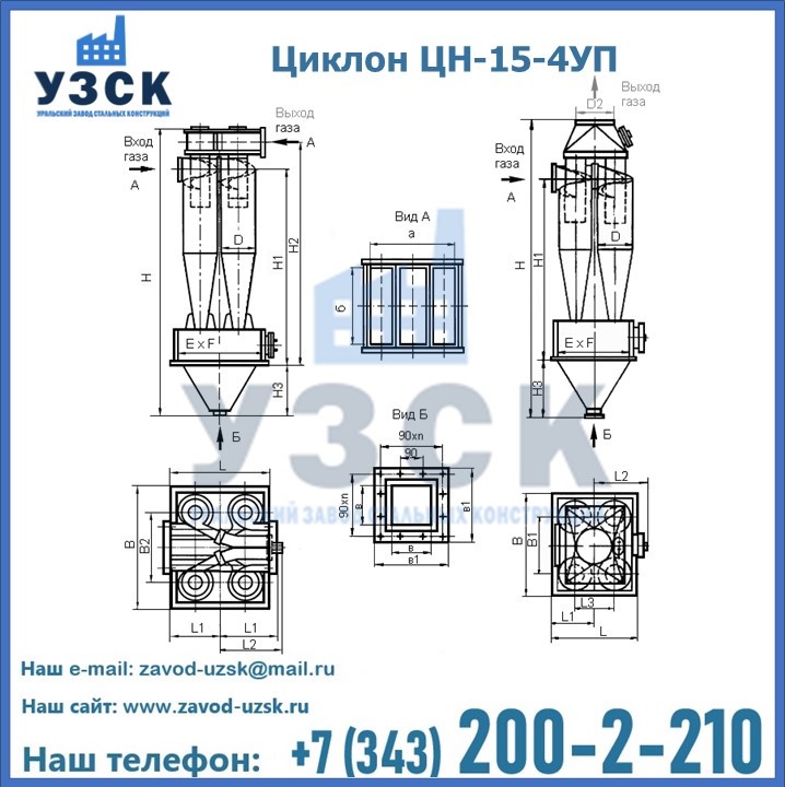Завод «УЗСК» в Магнитогорске предлагает большой выбор циклонов ЦН-15-900×4УП и прочих устройств, полностью укомплектованных и готовых к эксплуатации. Мы гарантируем соответствие оборудования всем требованиям ГОСТ и ТУ, износостойкость и высокую производительность предлагаемого оборудования. Уральский Завод Стальных Конструкций изготавливает и продает надежное, эффективное и производительное оборудование, имеющее длительную гарантию и большой эксплуатационный ресурс. Если требуется изготовить циклон нестандартных размеров, то такой вариант выполнения заказа тоже предусмотрен, так как предприятие имеет собственные производственные площади и надежных поставщиков. На все поставляемое или производимое оборудование имеются чертежи и прочая техническая документация. Заказать и купить циклоны или прочее оборудование высокого качества и по доступной цене можно через наш сайт или по указанному в разделе «Контакты» телефону.