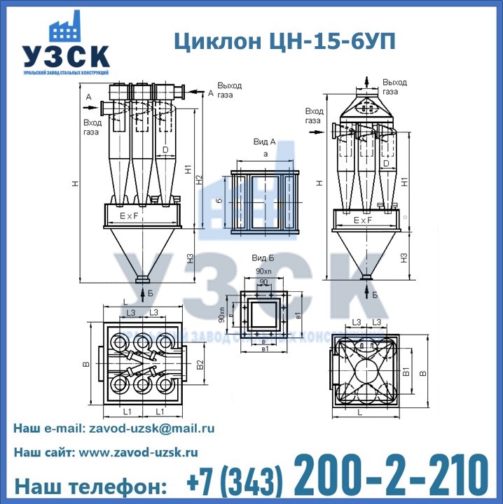 Завод «УЗСК» в Магнитогорске предлагает большой выбор циклонов ЦН-15-900×6УП и прочих устройств, полностью укомплектованных и готовых к эксплуатации. Мы гарантируем соответствие оборудования всем требованиям ГОСТ и ТУ, износостойкость и высокую производительность предлагаемого оборудования. Уральский Завод Стальных Конструкций изготавливает и продает надежное, эффективное и производительное оборудование, имеющее длительную гарантию и большой эксплуатационный ресурс. Если требуется изготовить циклон нестандартных размеров, то такой вариант выполнения заказа тоже предусмотрен, так как предприятие имеет собственные производственные площади и надежных поставщиков. На все поставляемое или производимое оборудование имеются чертежи и прочая техническая документация. Заказать и купить циклоны или прочее оборудование высокого качества и по доступной цене можно через наш сайт или по указанному в разделе «Контакты» телефону.