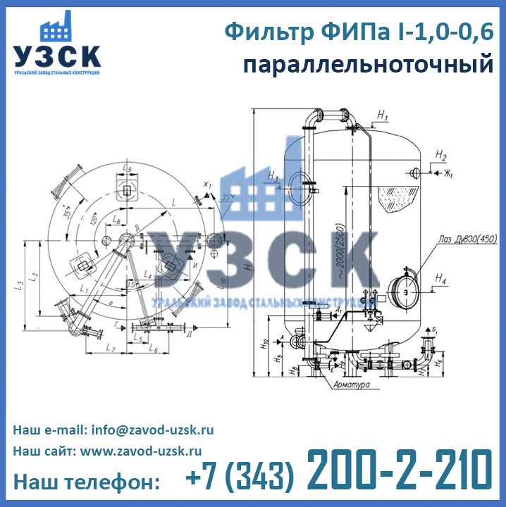 Для того, чтобы купить фильтр ФИПа1 1,0-0,6 в Магнитогорске выгодно, необходимо обратиться непосредственно к производителю данного оборудования. Ведущий производитель фильтров для смягчения воды – Уральский Завод Стальных Конструкций – предлагает фильтры натрий-катионитные параллельноточные по низким ценам. Оформить заказ на изготовление фильтра ФИПаI 1,0-0,6 Вы можете по электронной почте, указанной в разделе «Контакты» или при помощи формы заказа, расположенной ниже.