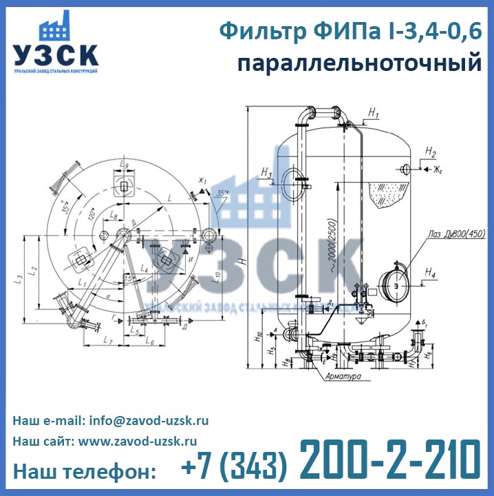 Производитель фильтров ФИПа параллельно-точных завод УЗСК предлагает два варианта комплектации ФИПаI 3,4-0,6 в Магнитогорске: