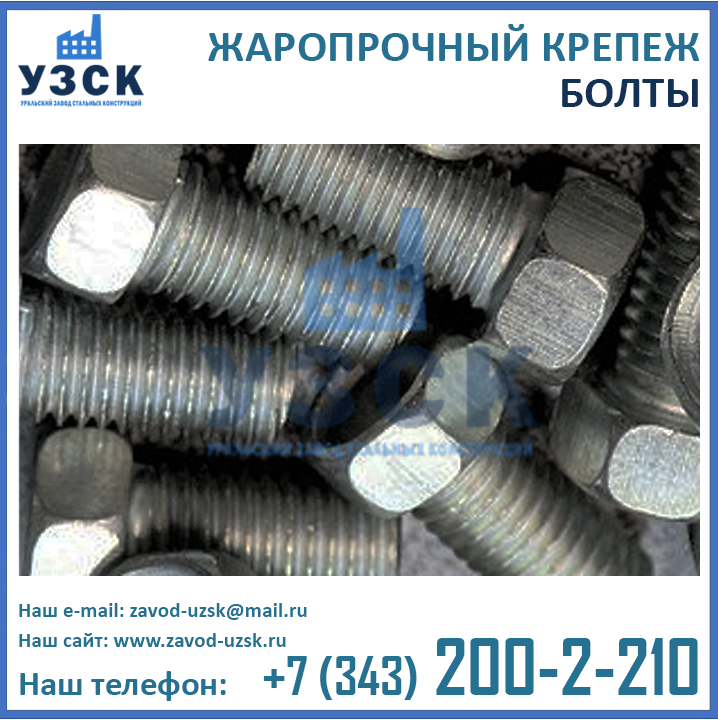 Являясь непосредственным производителем теплостойких метизов, Уральский Завод Стальных Конструкций может изготовить крепеж для высоких температур любого исполнения, как типового, так и нестандартного (по индивидуальным размерам и характеристикам заказчика). У нас Вы можете заказать оцинкованные болты, шпильки и гайки, обладающие жаропрочными свойствами, а также хромированные метизы.