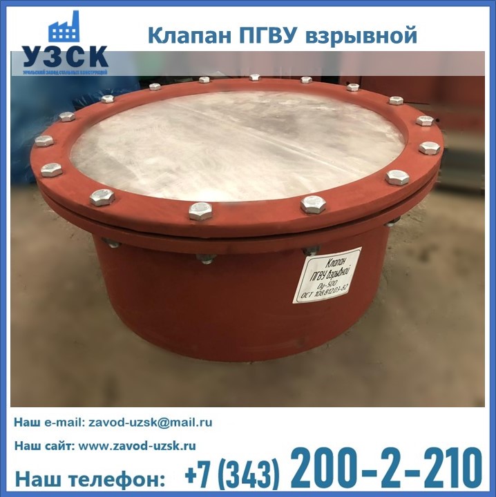Взрывной предохранительный клапан ПГВУ в Магнитогорске оборудуется в виде сквозного отверстия (окна) на взрывоопасном элементе энергетических установок. Такое окно закрывается специальной мембраной, а также оснащается створками или материалом, способным легко разрушиться в результате взрыва, что позволяет избежать высокого давления, образуемого взрывом.