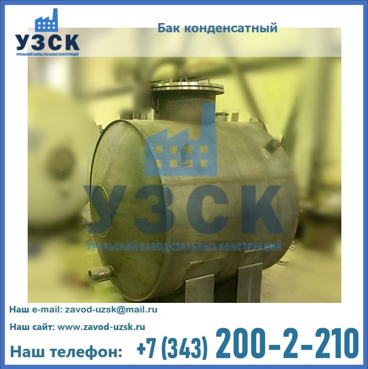 Многие заказчики стараются конденсатные баки купить по выгодной цене в компании «УЗСК» в Магнитогорске. Причин несколько. Производитель поставляет емкости с полным комплектом лестниц, площадок обслуживания. Бак после гидравлических испытаний покрывают специальной внутренней и наружной краской, накладывают теплоизоляцию или наваривают крепеж для навески минматов. Условия теплоизоляции согласуются с заказчиком.