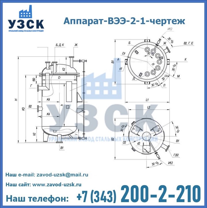 Емкостные аппараты ВЭЭ представляют вертикальную цилиндрическую емкость с эллиптическими днищами. В силу специфической формы сосуды выдерживают избыточное давление. Материалы изготовления внутренней полости не подвержены коррозии. Сосуд используется в Магнитогорске для хранения сжиженных газов, жидкостей и как промежуточное звено технологической цепочки в химической, нефтехимической, целлюлозной промышленности.