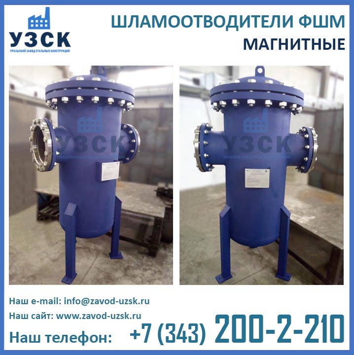Являясь непосредственным изготовителем фильтров магнитных ФШМ, Уральский завод стальных конструкций предлагает самые низкие цены на шламоотделители ФШМ Ду250 в Магнитогорске. Производство магнитных шламоотводителей осуществляется в самые короткие сроки специалистами сварочного производства НАКС по аттестованной технологии сварки при помощи сварочного оборудования, аттестованного Национальным агентством контроля сварки.